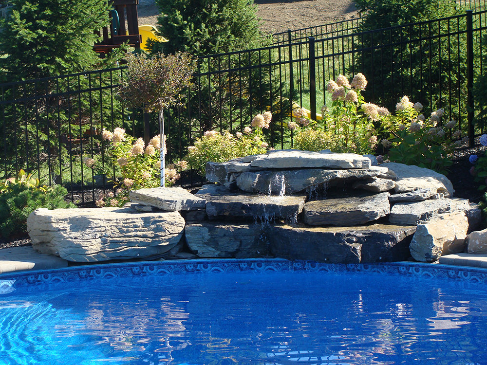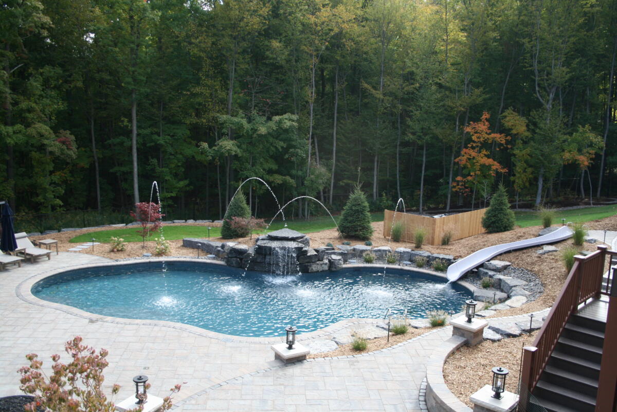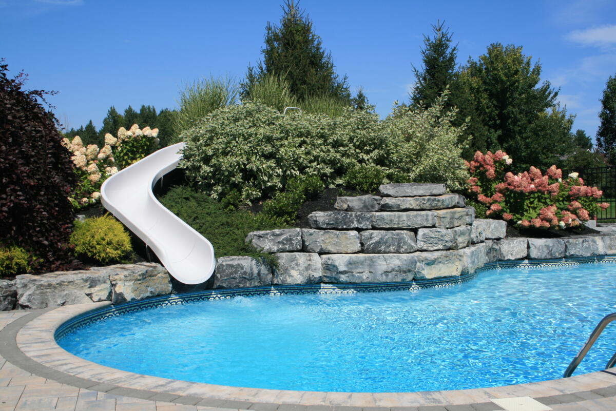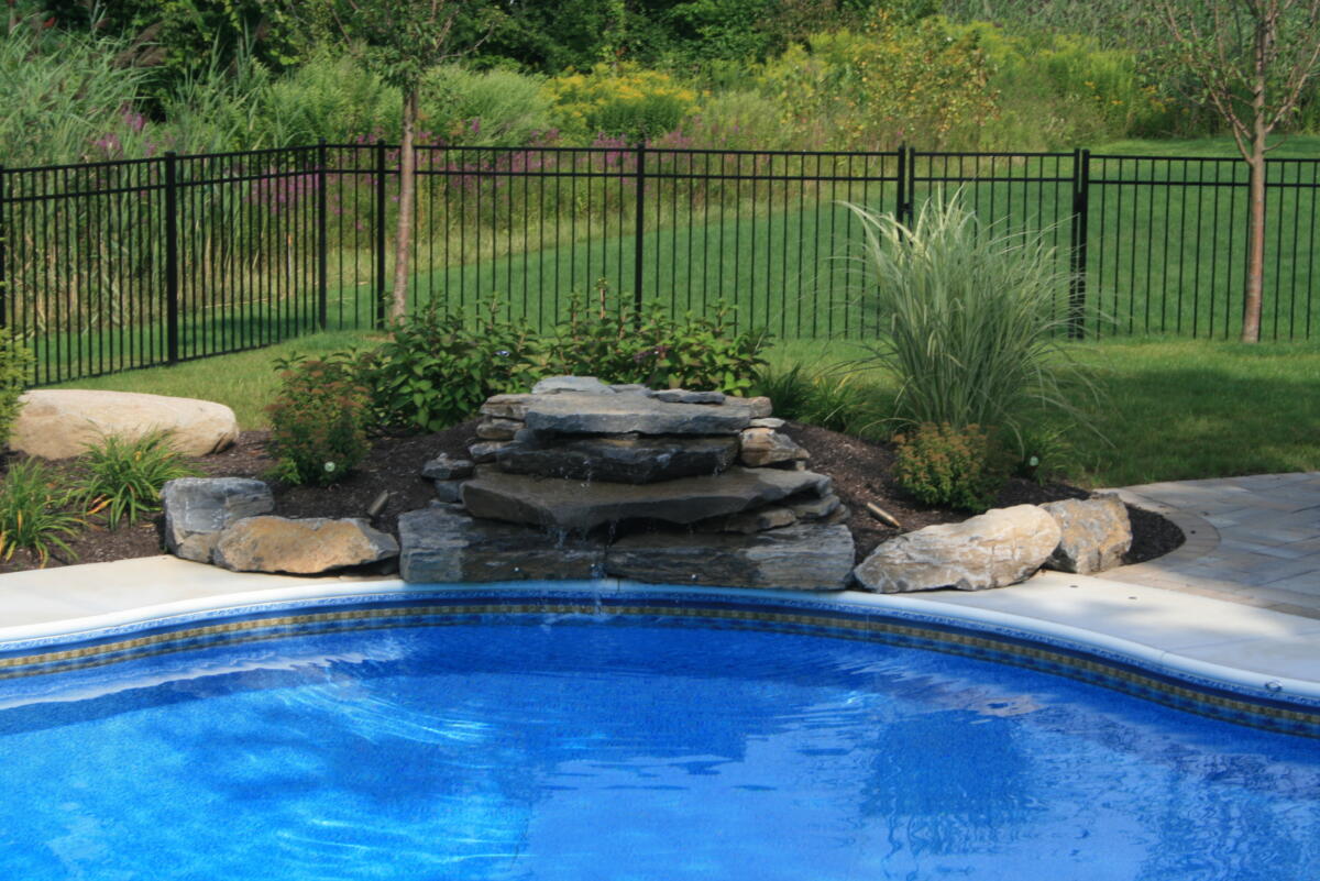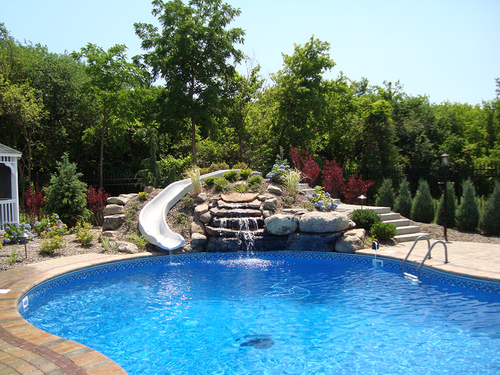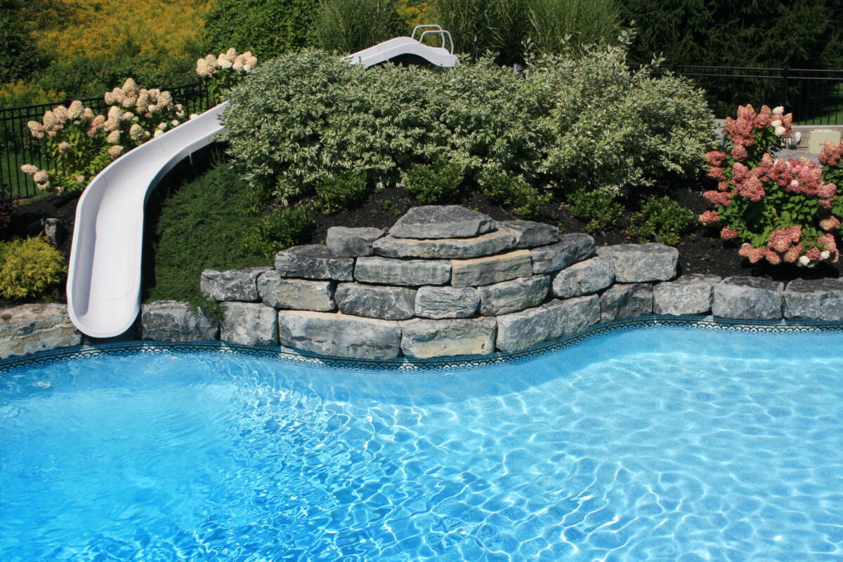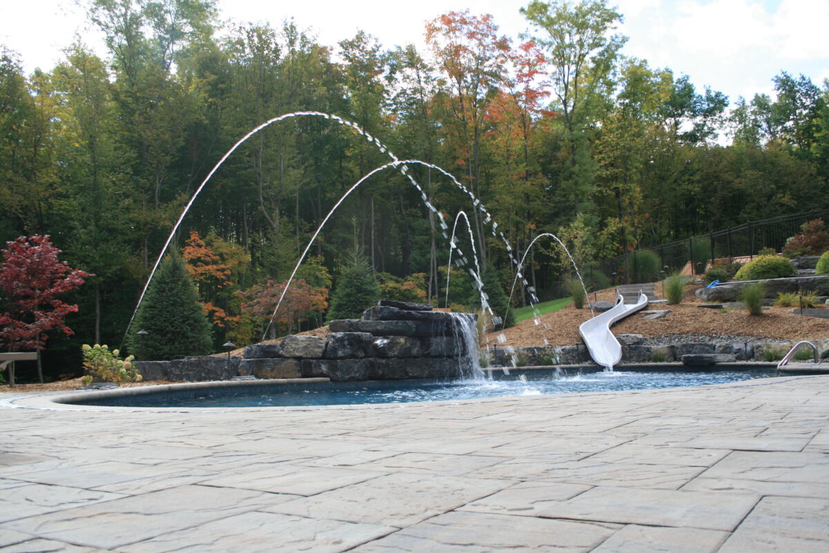 Adding a water feature to your backyard pool is the perfect blend of form and function. Nothing beats a summer pool party with a built in water slide. And nothing is more relaxing than the calming sound of a waterfall while you enjoy your backyard.