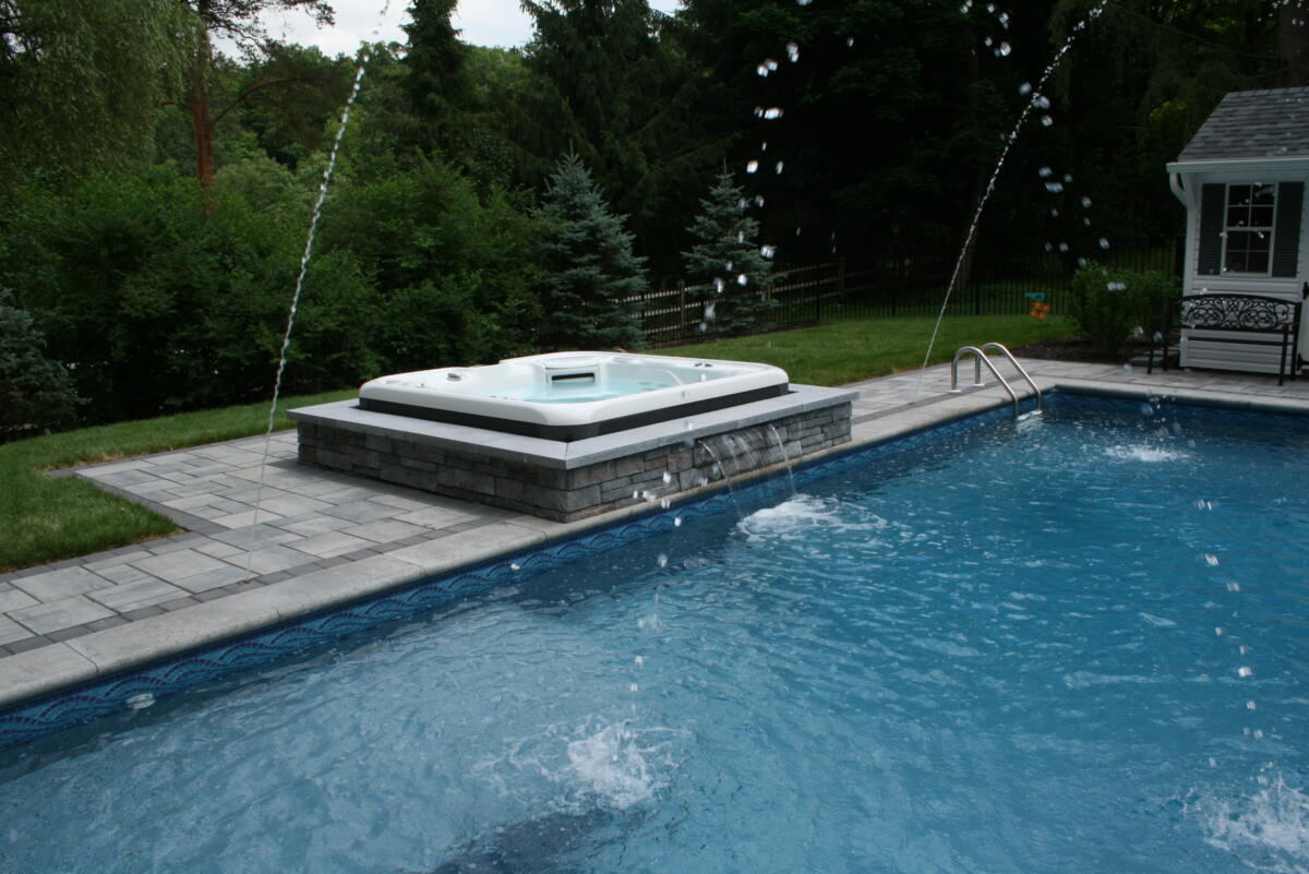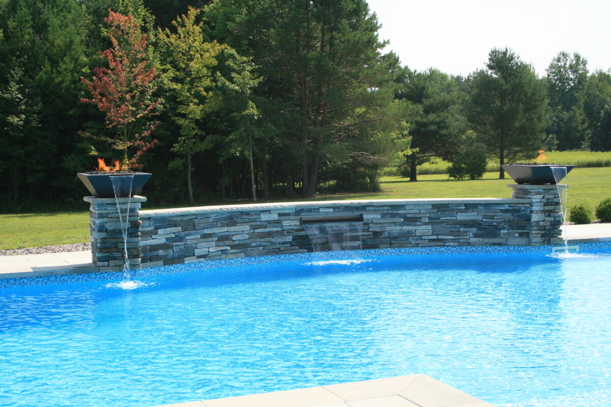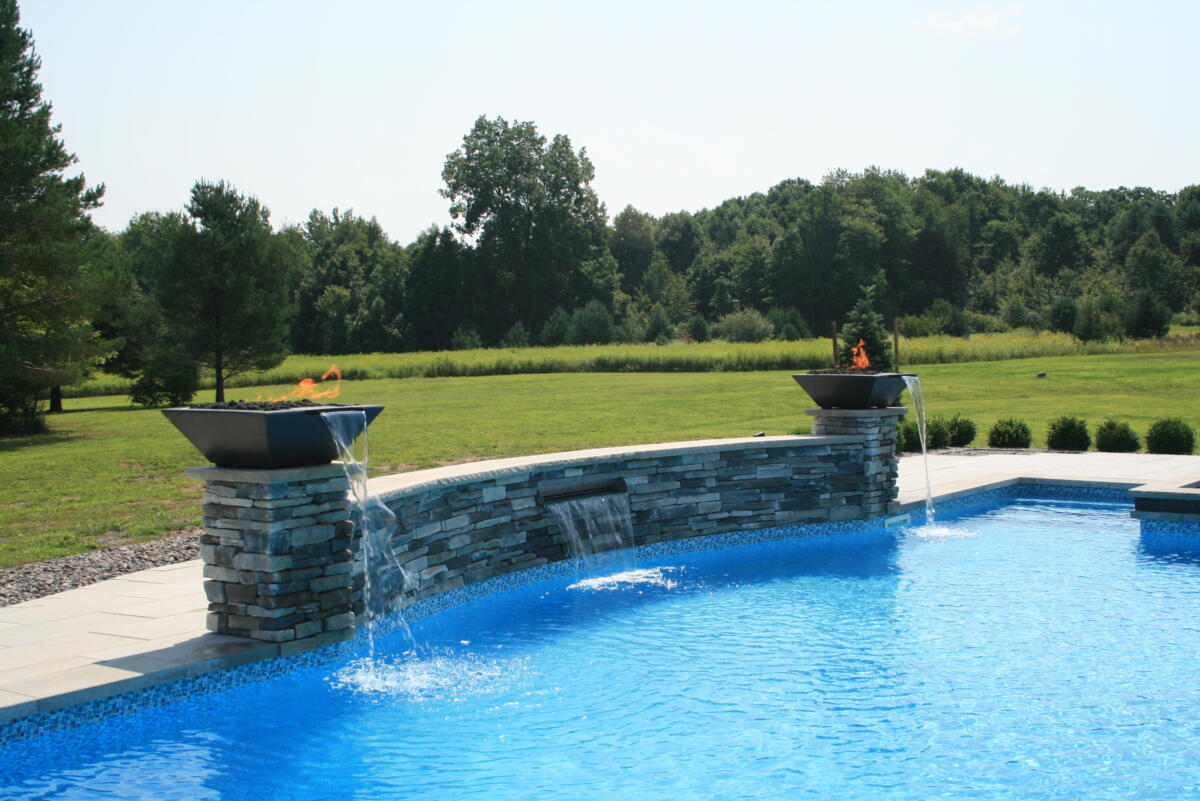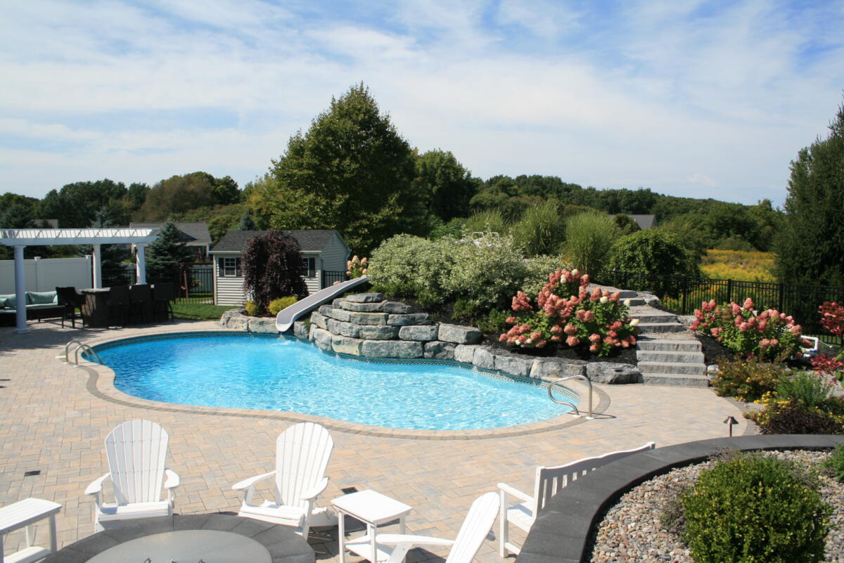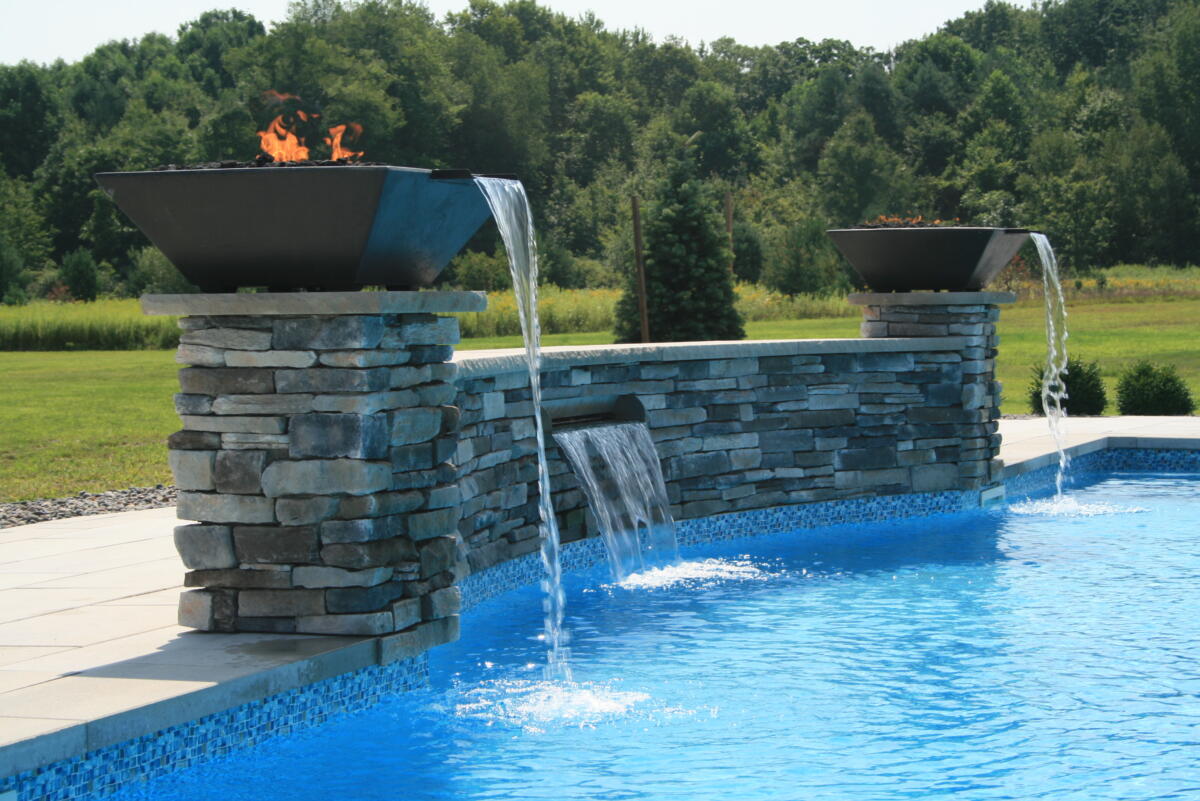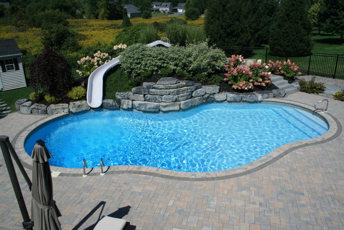 Adding a water feature to your backyard pool is the perfect blend of form and function. Nothing beats a summer pool party with a built in water slide. And nothing is more relaxing than the calming sound of a waterfall while you enjoy your backyard.